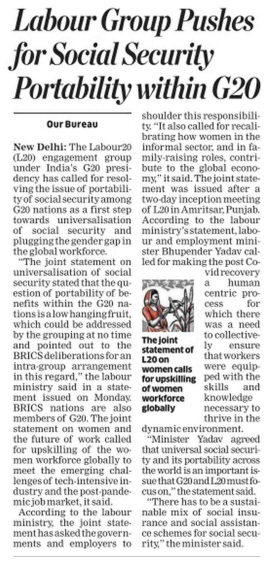 Issue 1: Universal Social Security</STRONG></H4> <P style="text-align: justify;">The growing diversification of employment and work arrangements has implications for access to adequate social protection. The phenomenon is compounded by the emergence of new forms of work, automation and globalization. It is well known that there has been a lot of diversification of work resulting in major changes in the labour market. The global supply chains connect industries and workers throughout the globe, new technologies have been transform the work organisations, leading to the emergence of new forms of work which were unheard of a few decades ago. Such changes in work dynamics has over the period resulted in greater informality of work, thereby resulting in lower levels of protection. Today, many countries are still facing significant challenges in making the human right to social security a reality for all. As of 2020, only 46.9 per cent of the global population were effectively covered by at least one social protection benefit1 (Sustainable Development Goal (SDG) indicator 1.3.1), while the remaining 53.1 per cent – as many as 4.1 billion people – were left wholly unprotected. Behind this global average, there are significant inequalities across and within regions, which call for adequate and adapted policy responses